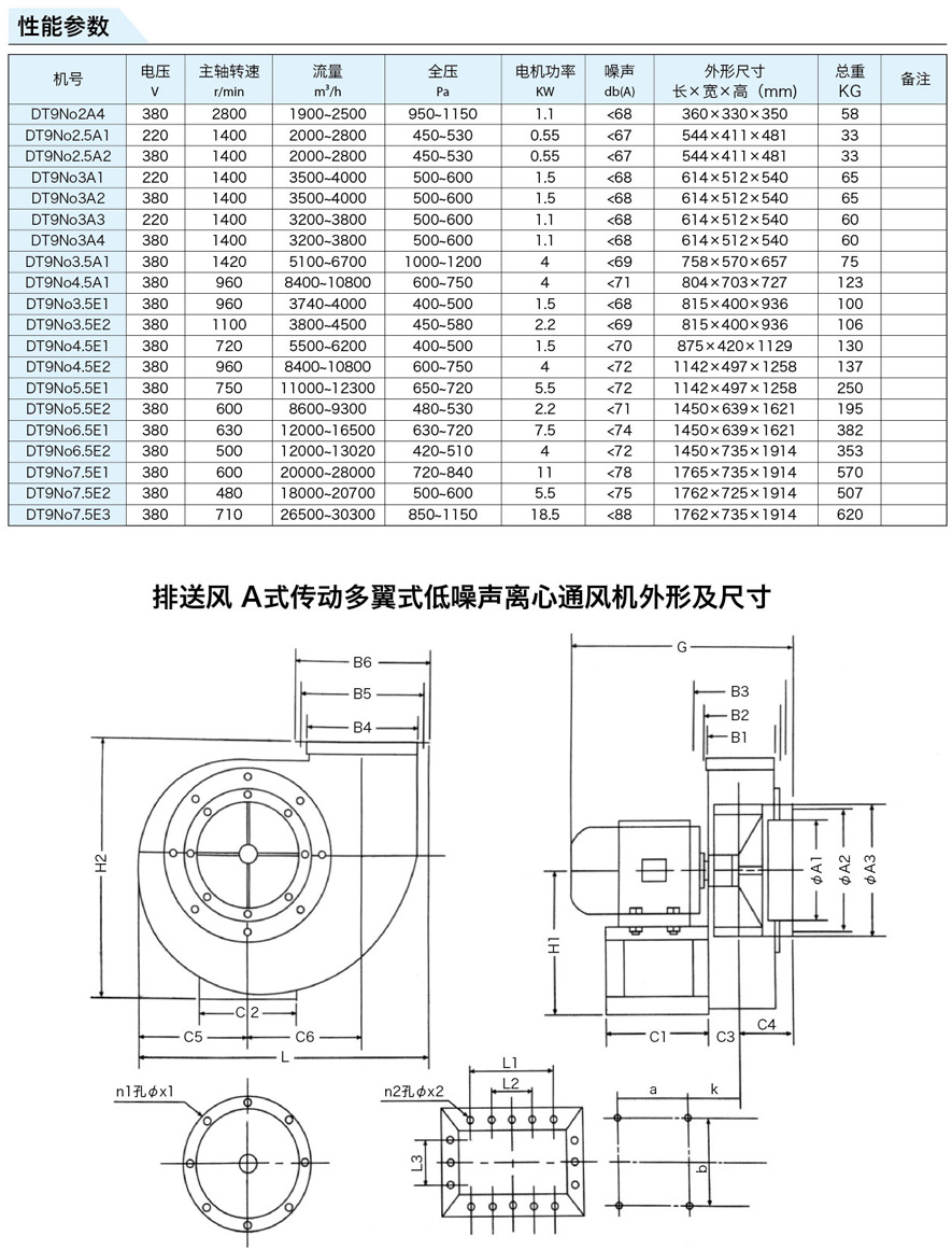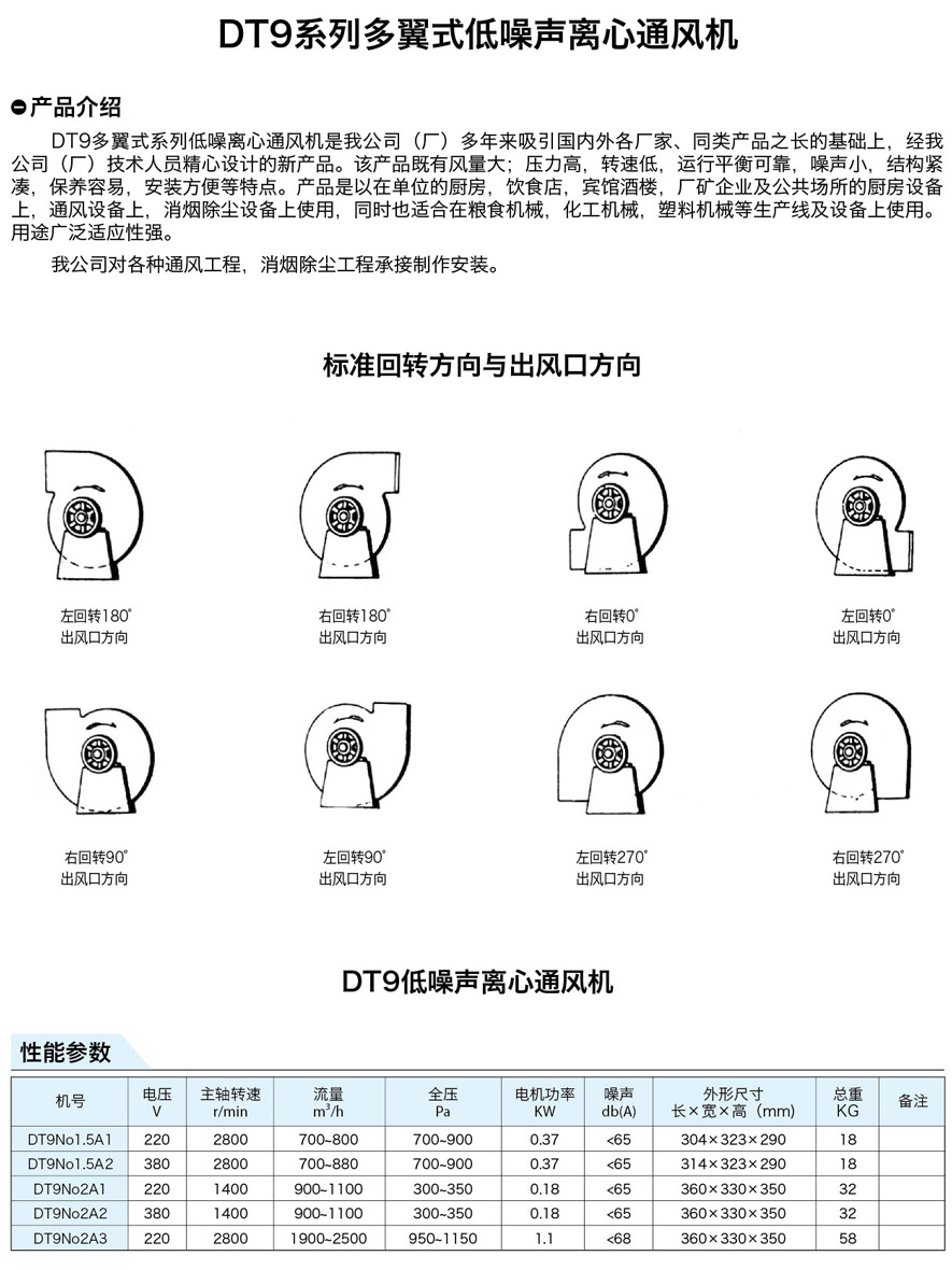 DT9多翼式系列低噪離心通風(fēng)機(jī)是我公司(廠)多年來吸引國內(nèi)外各廠家、同類產(chǎn)品之長的基礎(chǔ)上,經(jīng)我 公司(廠)技術(shù)人員精心設(shè)計的新產(chǎn)品。